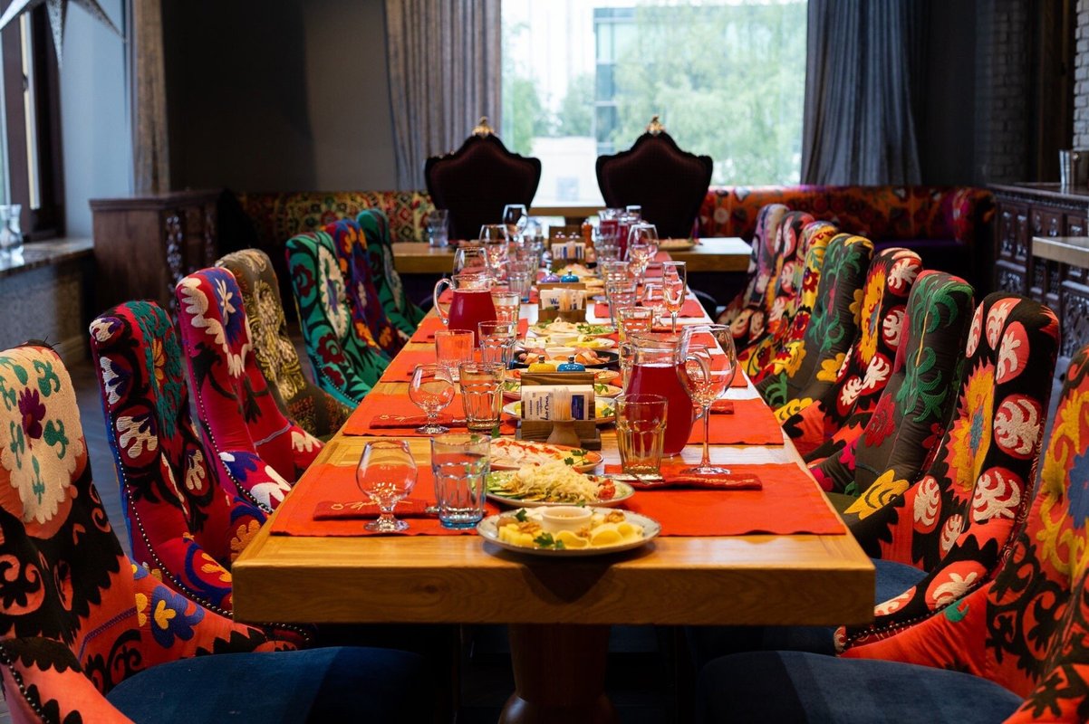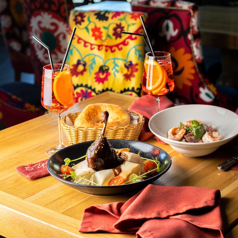 В нашем меню представлены блюда нескольких видов кухонь: узбекской, кавказской, европейской, из которых самой популярной, пожалуй, является европейская. Наши повара знают, как правильно сохранить истинный вкус главных составляющих в блюде - овощных или мясных, лишь аккуратно дополняя его вкусом специй.